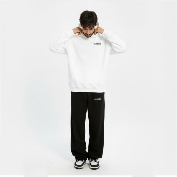 Finitions haut de gamme : molleton 450g brossé intérieur, capuche doublée sans cordon pour une ligne nette, poches kangourou dissimulées. Impression pigmentaire HD résistante au temps et aux lavages.